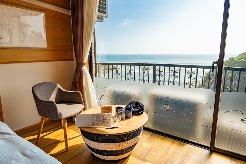 お腹も気持ちも満たされながら一夜を過ごし、翌朝目を覚ますと、窓の向こうは太平洋と水平線を照らす太陽。なんと贅沢なことだろうか。